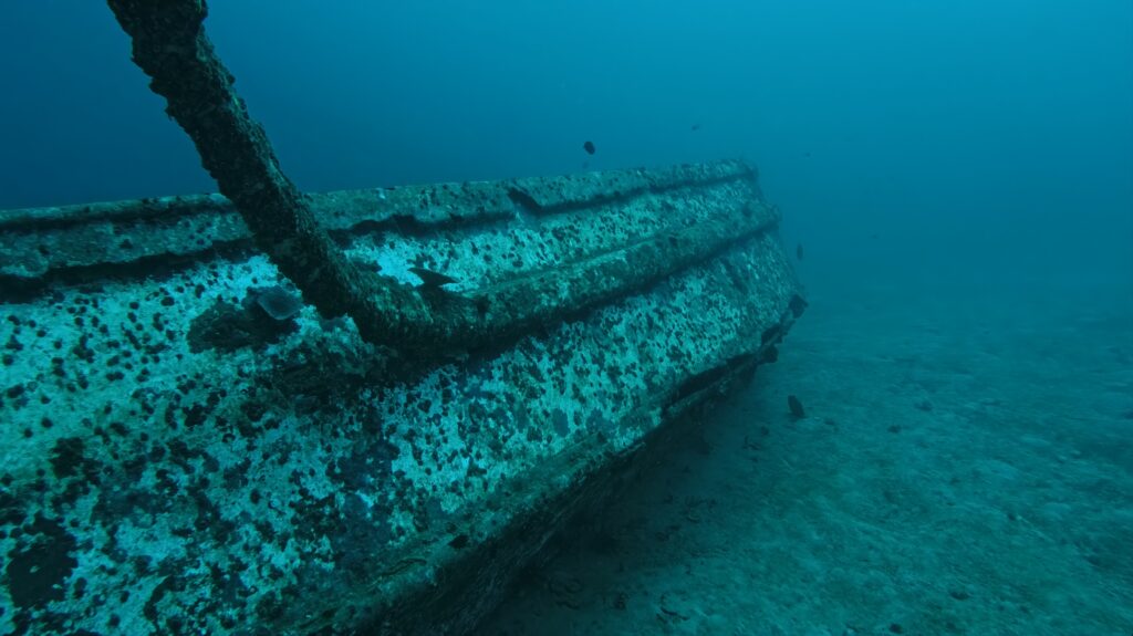 そんなこんなで水深5m付近に来ると謎の人工物が出てきます。
