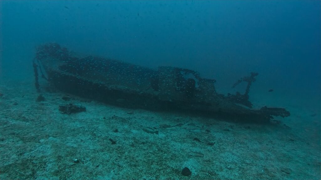 エントリーして水深20m付近に船が二隻沈んでいます。